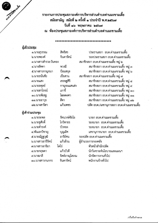 ประชาสัมพันธ์รายงานการประชุมสภาองค์การบริหารส่วนตำบลด่านมะขามเตี้ย สมัยสามัญ สมัยที 2 ประจำปี พ.ศ.2567